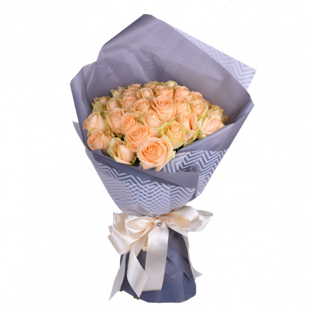 Состав: Упаковка для букета: крафт-бумага, Роза кремовая 60 см 35шт.