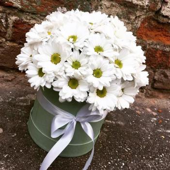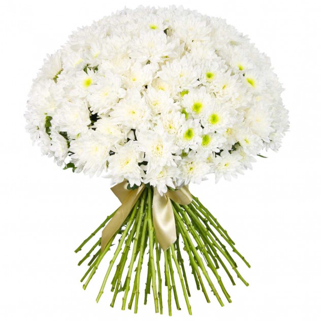 Невероятно нежный, но строгий букет из белых хризантем навсегда останется приятным воспоминанием в сердце Вашей любимой.