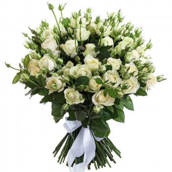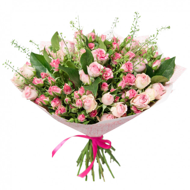 Состав: Упаковка для букета: крафт-бумага, Роза кустовая 15шт., Грин белл 3шт.