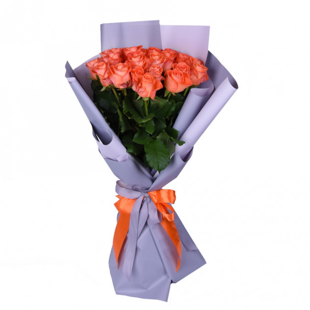Состав: Роза оранжевая 60 см 15шт. Упаковка для букета: крафт-бумага 2шт.,