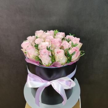 Роза розовая 60 см 25шт., Шляпная коробка 18*18, Бумага тишью